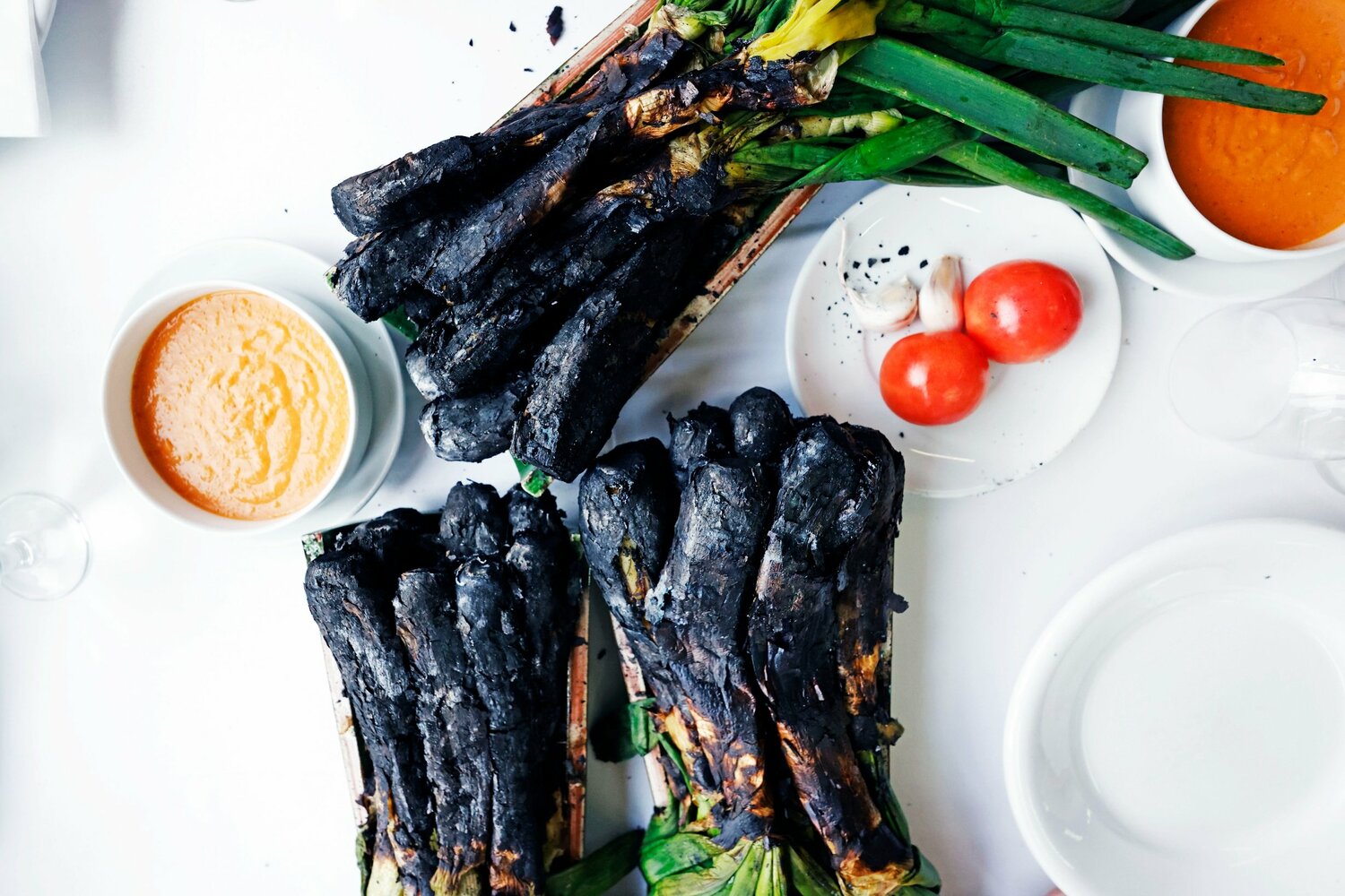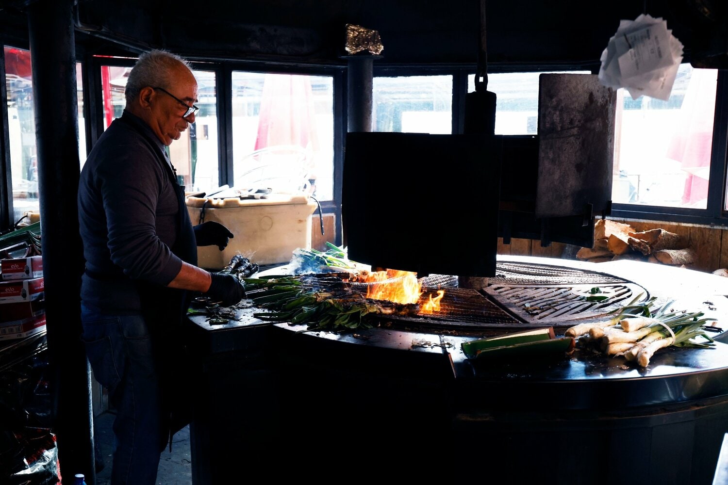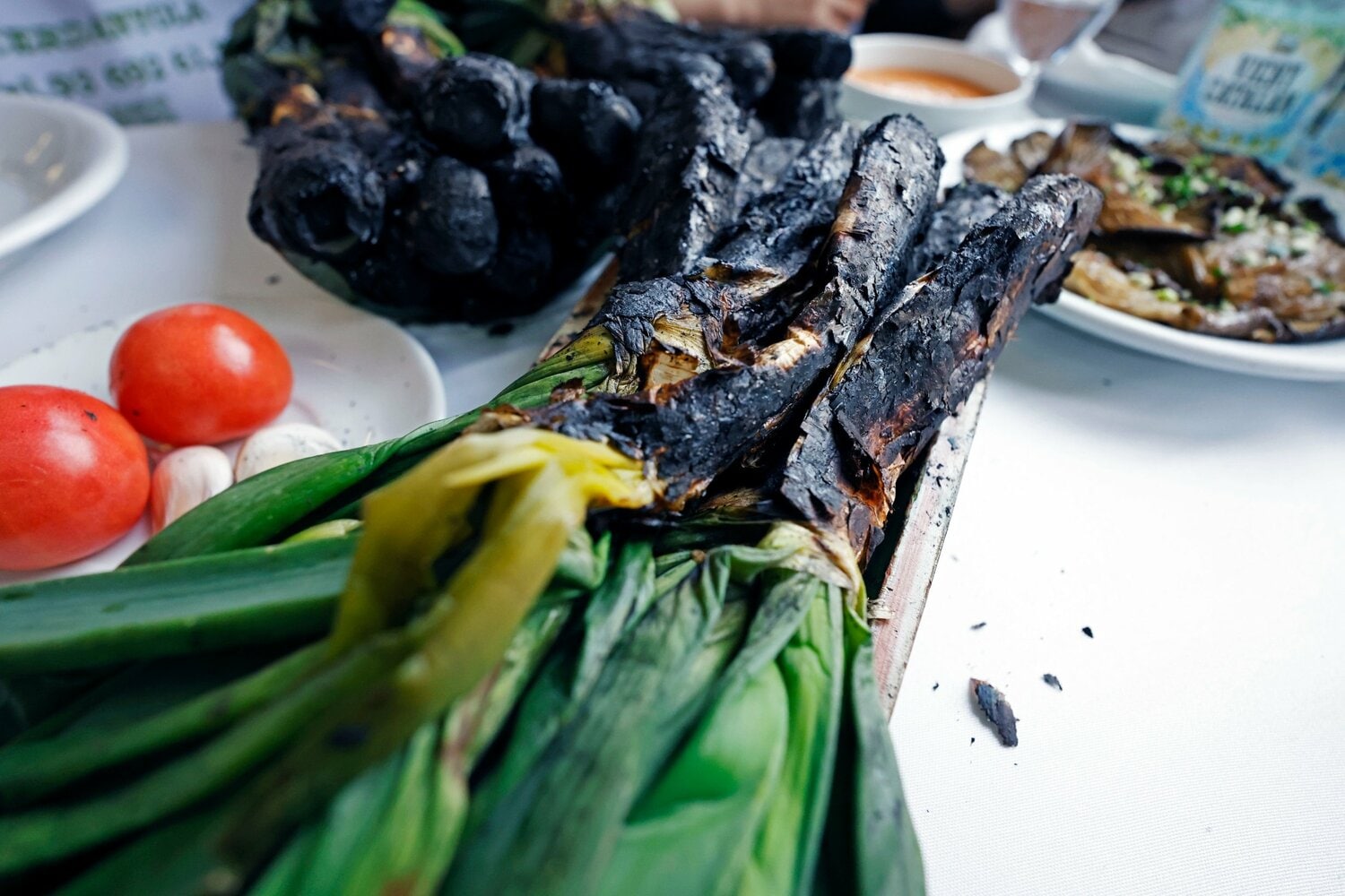 この時期だけに食べられるカルソッツは、季節限定の郷土料理。簡単に言ってしまえば、ネギの炭火焼きに特製ロメスコソースを付けて食べるだけというもの。