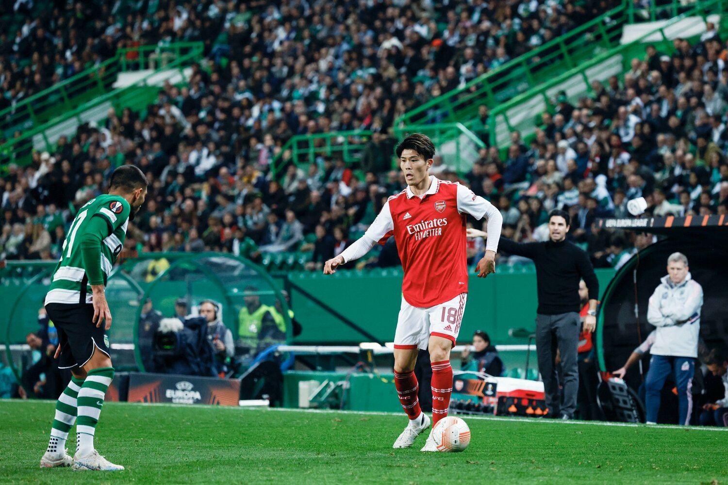 守田英正と冨安健洋。スポルティングとアーセナルの一員としてELの舞台で戦った