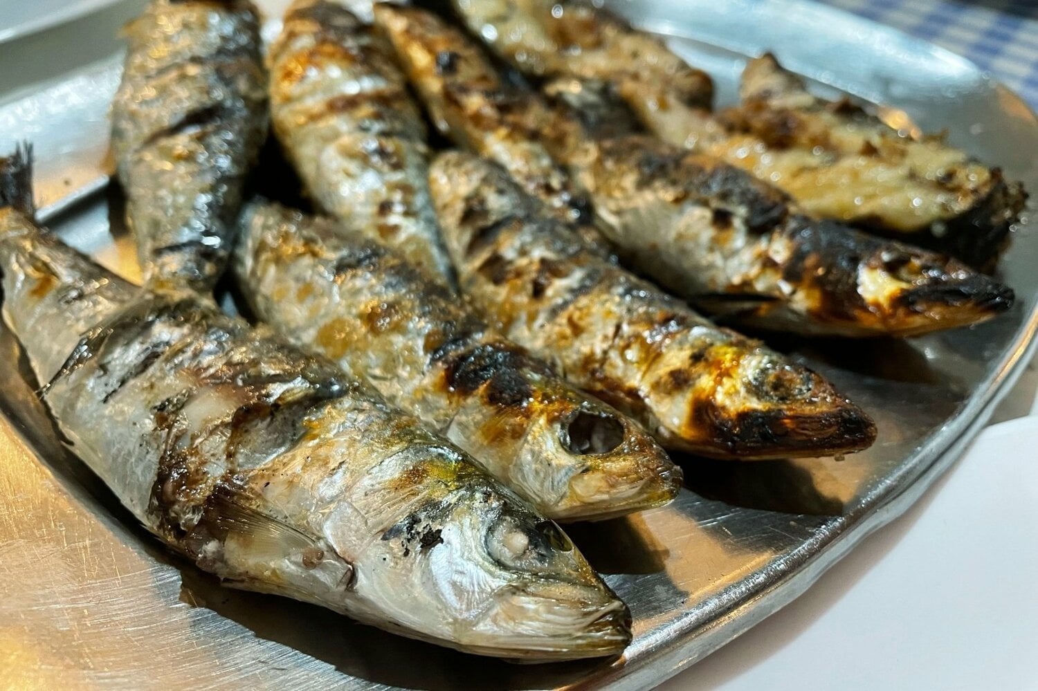 ポルトガル名物のイワシの炭火焼き、海鮮リゾットを仕事後のビールと共に。壁に取り付けられたTVでは、先ほど目の前で撮影していた試合が流されていた。