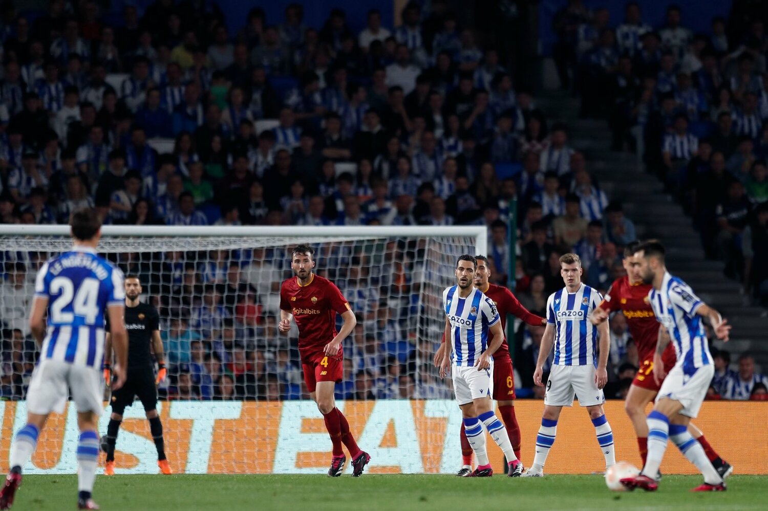 ただローマのキックオフで始まった試合は、そのままアウェイチームが押し込む展開に。徐々にダビド・シルバを中心にソシエダがポゼッションを上げ、ローマ陣内で試合を展開するようになるが、ローマ監督モウリーニョの統率する鉄壁の守備網を前に、縦にボールを付けることができず、大きな決定機を作ることができないまま前半を終えてしまった。
