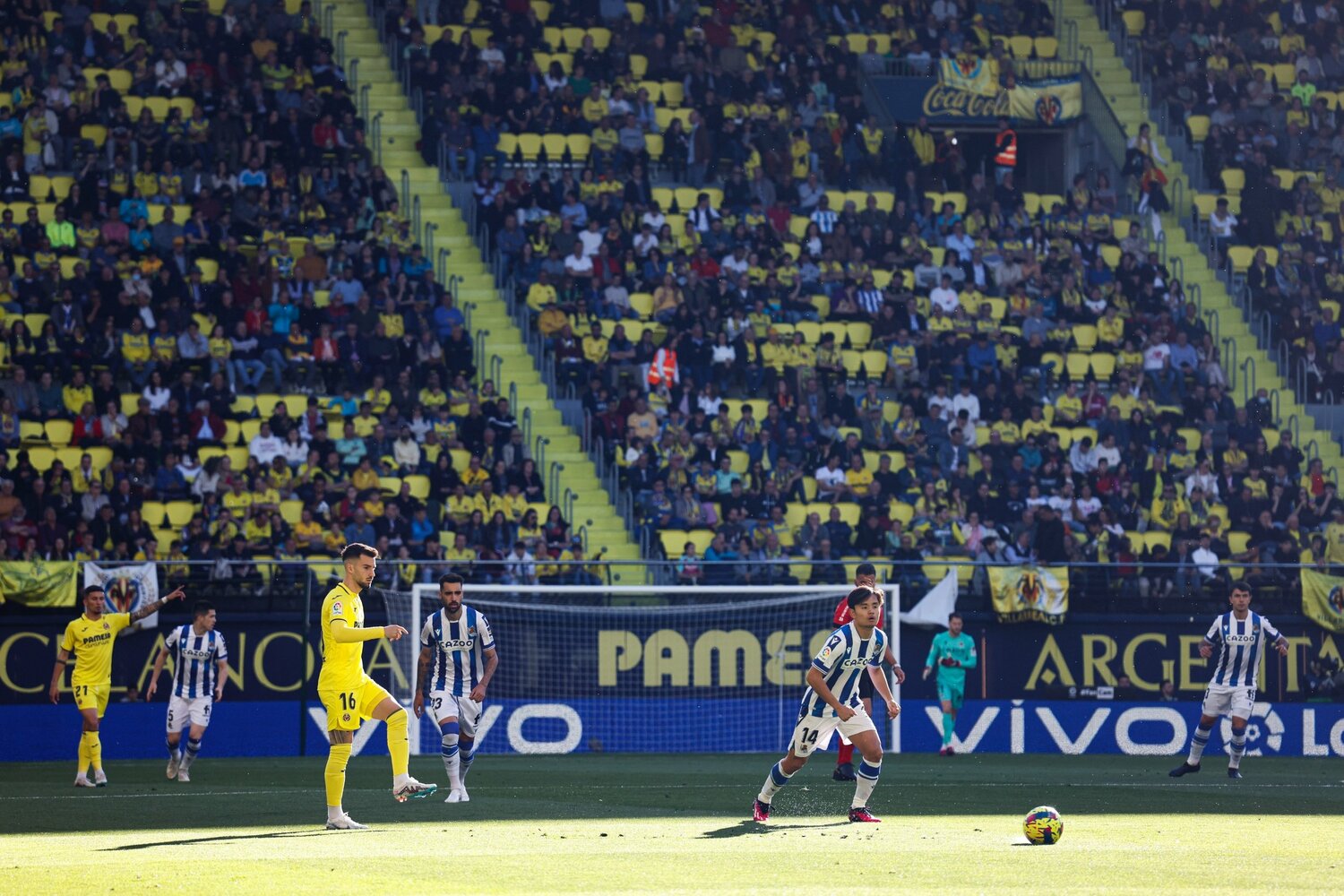 キックオフは18時半、晴天にホームチームのチームカラーである黄色に統一されたスタジアムが映える。スタジアム周りでは、多くのホームサポーターと共に、青白のアウェイチームサポーターの姿も見られた。またこの時間帯、ピッチの4分の1ほどのスペースに強い日差しが落ちており、ソシエダ側は、日差しが当たる中でのアップとなった。