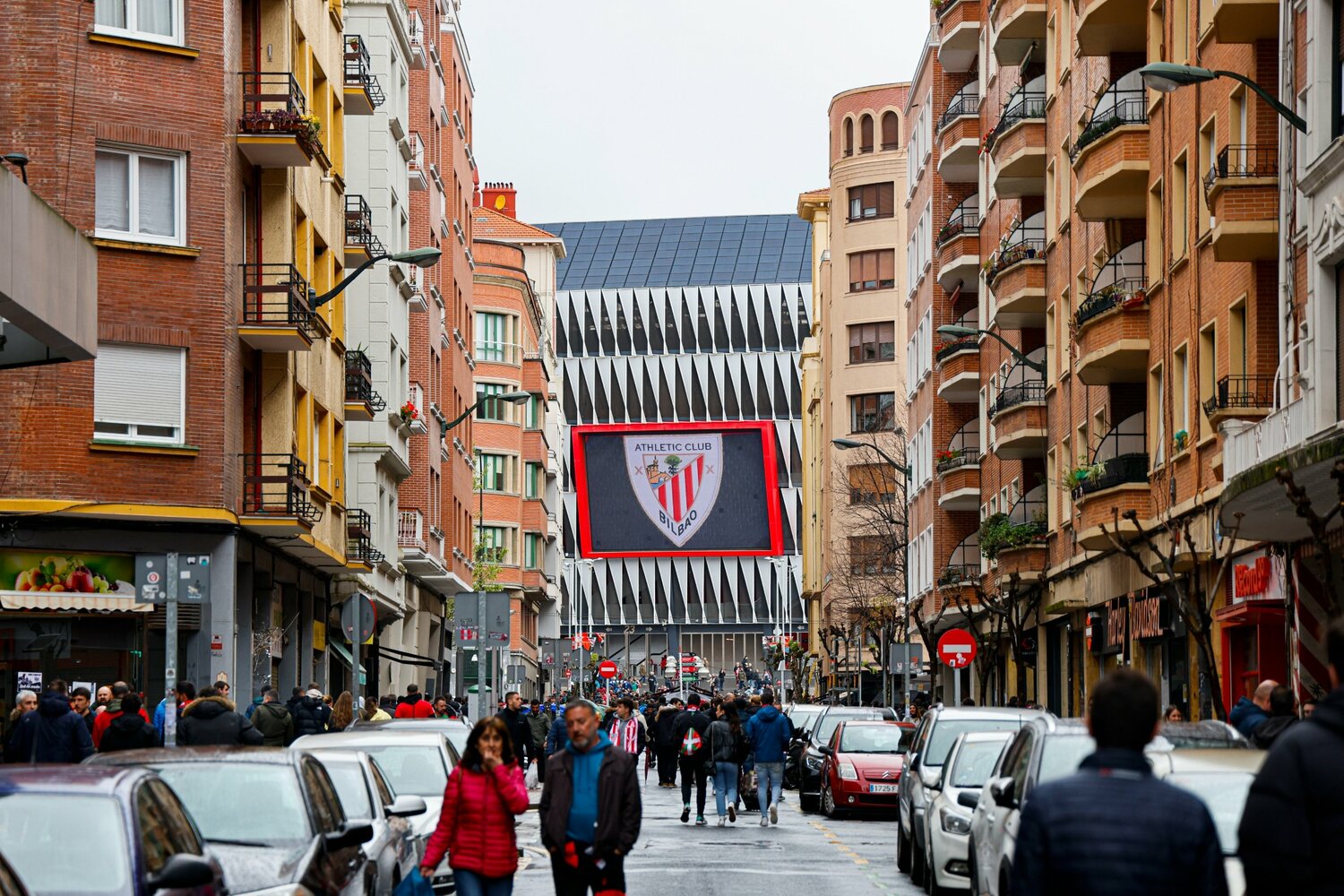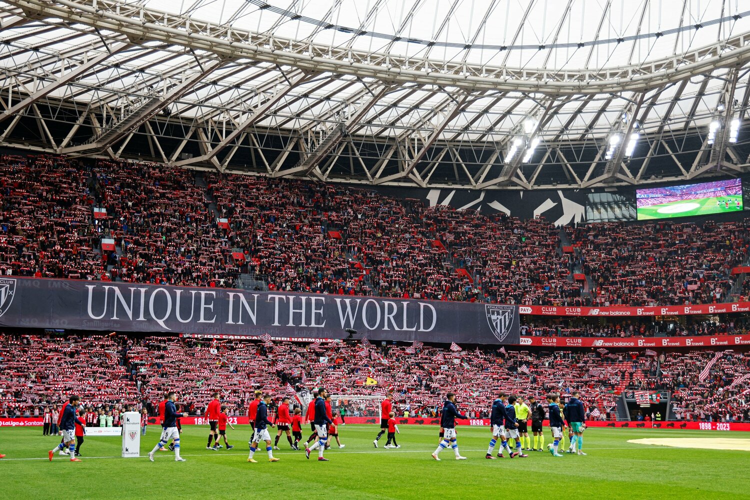 試合当日の4月15日、ビルバオ空港到着ロビー、最初に目に入ってきたのは、ビルバオで活躍するイニャキとニコのウィリアムス兄弟がポーズを取る、この試合の告知ポスターだった。また住宅地の向こうに、巨大な姿の一部を覗かせるスタジアム直結の一本道には、赤と白のマフラーを巻いた多くのサポーターが溢れていた。この試合への意気込みがひしひしと伝わってくる。