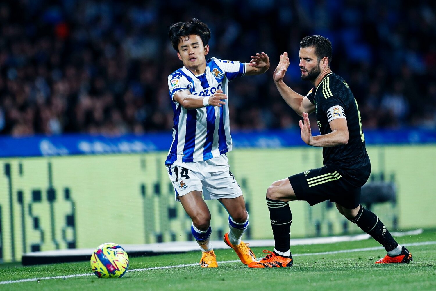 右サイドに入った久保は、序盤より相対するナチョに激しいプレッシングをかけていった。また久保がサイドでボールを受けて縦への突破を図る際には、ナチョが激しく久保をストップする。