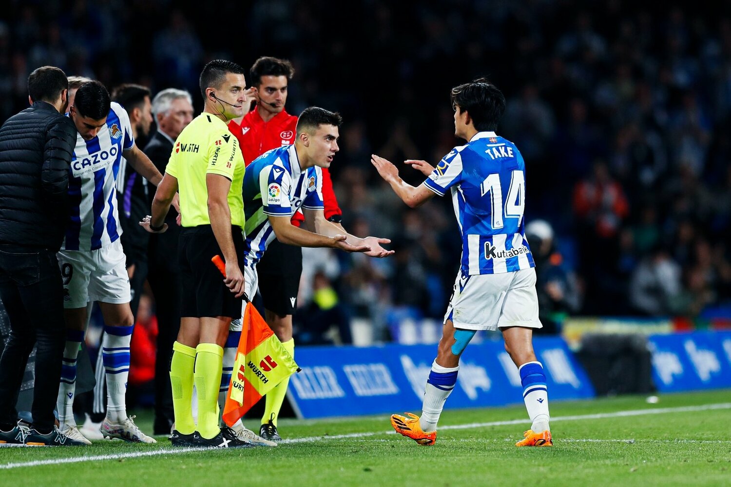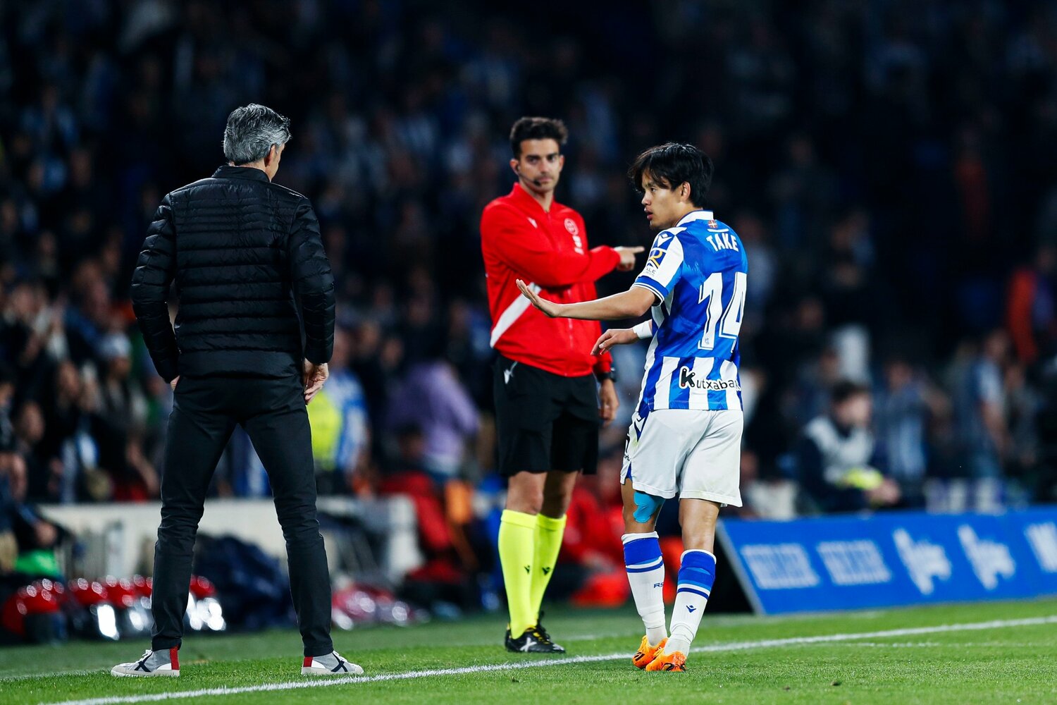 61分、2枚目のイエローカードでカルバハルが退場になると、ソシエダ監督イマノルは交代策に打って出る。その際には、久保の状況を確認し、久保の意志によってプレーを継続させている。