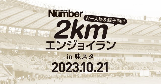 Information 《味スタでスポーツを楽しもう!》Number Sports Festa 2023.10.21開催決定! posted2023/08/01 11:00 Number主催のスポーツイベントが5年ぶりに東京・味の素スタジアムに戻ってきました! 今回は従来の「駅伝大会」と「フットサル大会」のほかに「2kmエンジョイラン」も加えた3部構成です。 仲間と襷をつなぎたい方やボールを蹴りたい方、お一人様&親子で楽しく走りたい方、ぜひ10月21日(土)は味スタにご来場ください! 第1部 NumberDo EKIDEN 9:30-11:30 詳細はこちら 第2部 お一人様&親子向け2kmエンジョイラン 11:35-12:05 詳細はこちら 第3部 Number Futsal Cup 14:30-18:30 詳細はこちら