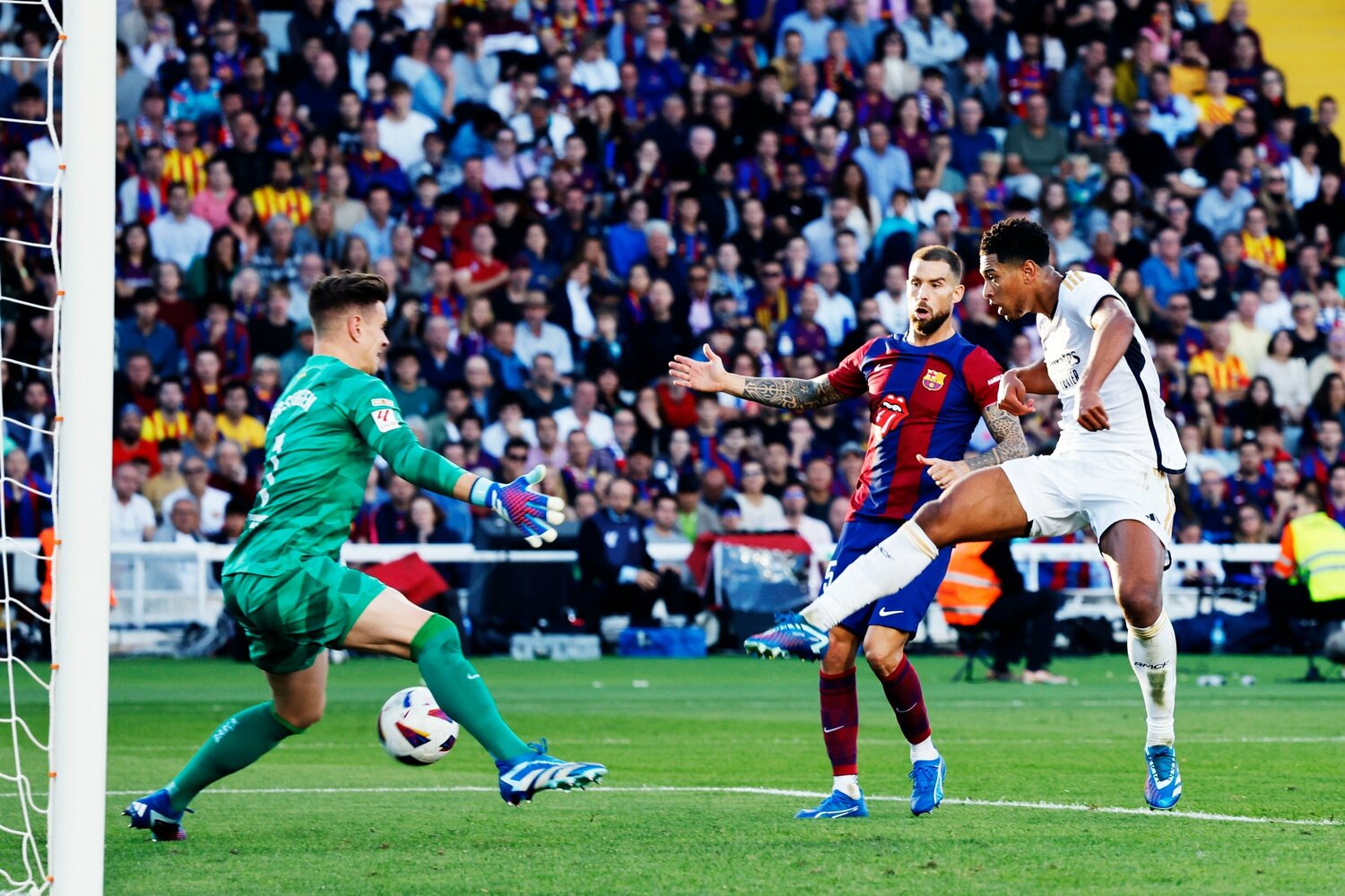 68分、ビニシウスのクロスに反応したガビがベリンガムのマークから離れた一瞬だった。ボックス外ゴールまで25メートル、フリーのベリンガムの元へボールがこぼれた。迷わず振り抜かれた右足から放たれたボールは、GKテアシュテーゲンの右手がボールに触れることを許さずネットへと突き刺さった。