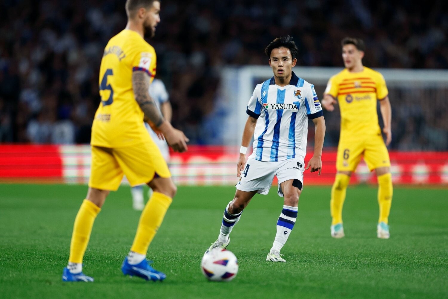 守備時にもソシエダは、バルサに対し積極的に前プレスを敢行。久保、オヤルサバルがパスコースを限定していくと、中盤ではバルサの乱れたパスをスビメンディが刈り取り、鋭いカウンターに繋げた。さらに今季、ソシエダのライバルであるビルバオからバルサに加入したイニゴ・マルティネスがボールを持つたびに、スタジアム全体が大きなブーイングを浴びせ続けた。