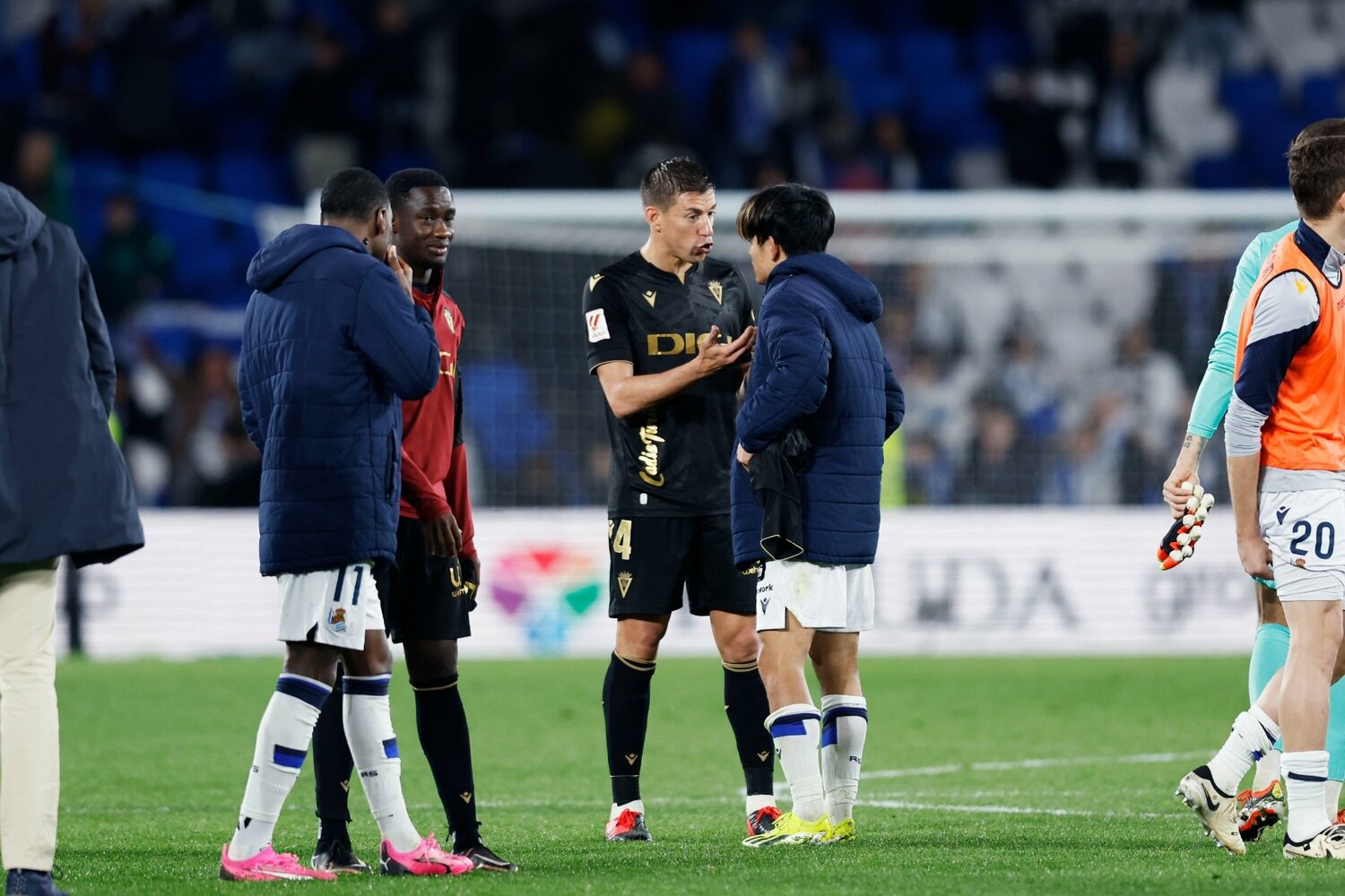 また試合後には、相手ボランチのルベン・アルカラスから話し込まれる久保の姿があった。