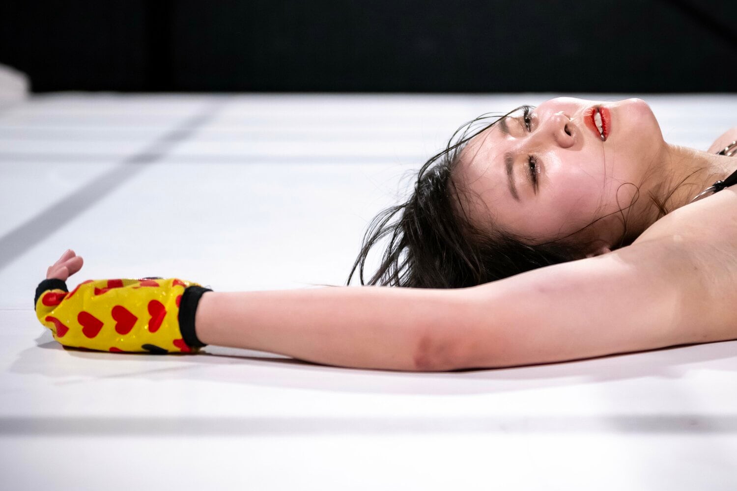 力尽きた彼女を、パチ子の強烈な技が襲う。フィニッシュは全女式ボディスラムから後方に叩きつけるキューティー・スペシャル。