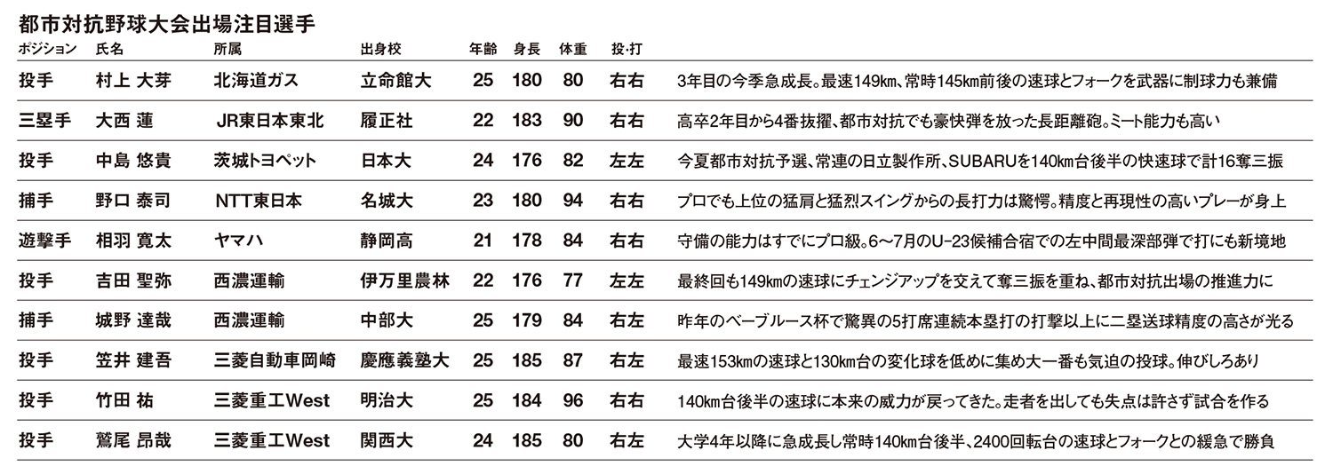 DeNA・度会隆輝に続く逸材は今年も現れるか!? 第95回都市対抗野球に出場する、プロ注目の4選手とは?