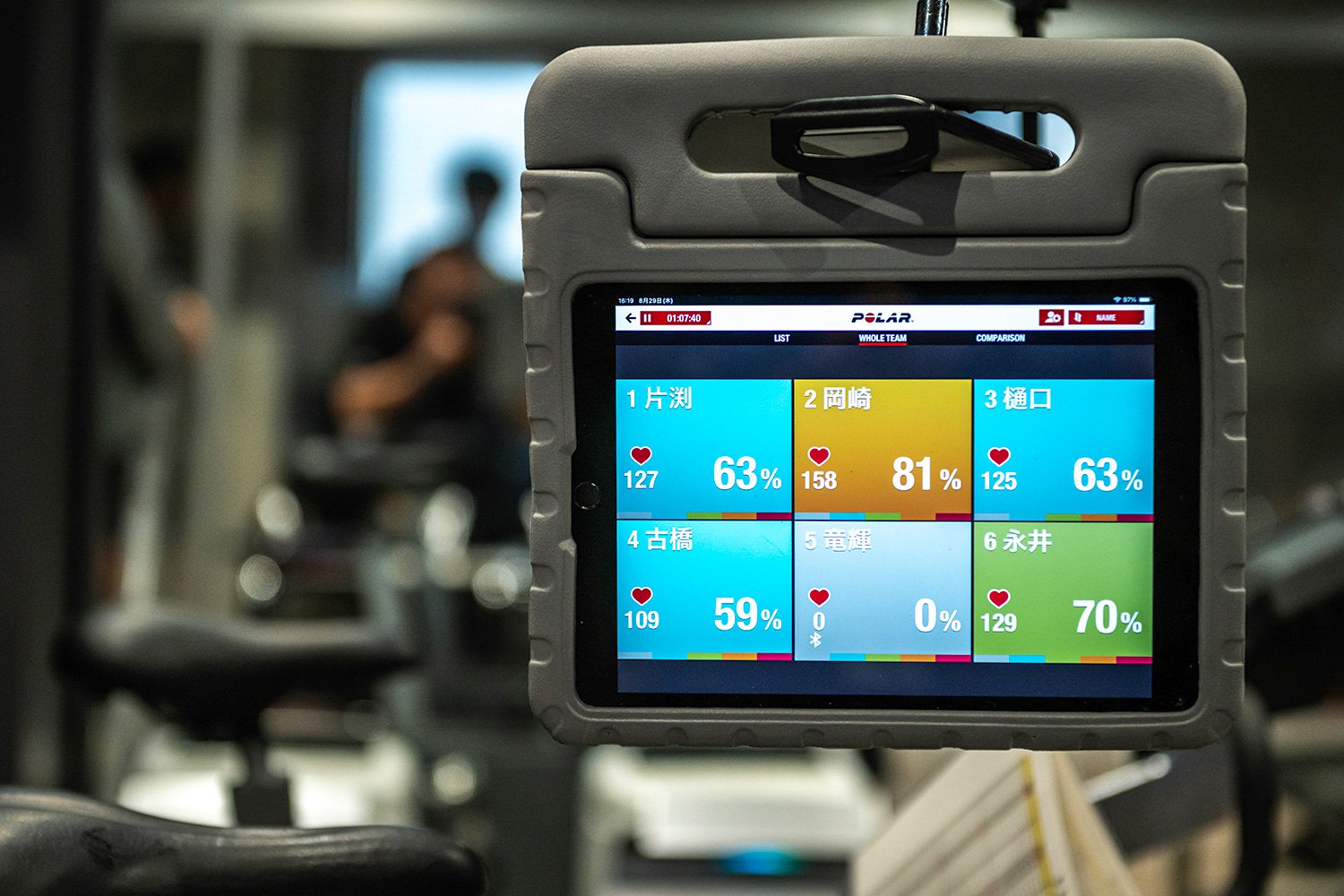櫛部 速度を固定化できるのがトレッドミルの良さで、成長度をきちんと把握することができます。あと安静時と最高時を知っておくのも大切です。例えば、低酸素室で最大酸素摂取量を高めるようなトレーニングの場合、慣れてくるとこれまで通りの負荷では不十分になります。選手の心拍数を常時モニタリングしながら、最大酸素摂取量が向上するような強度(心拍数95%前後)を適切に設定するようにしています。