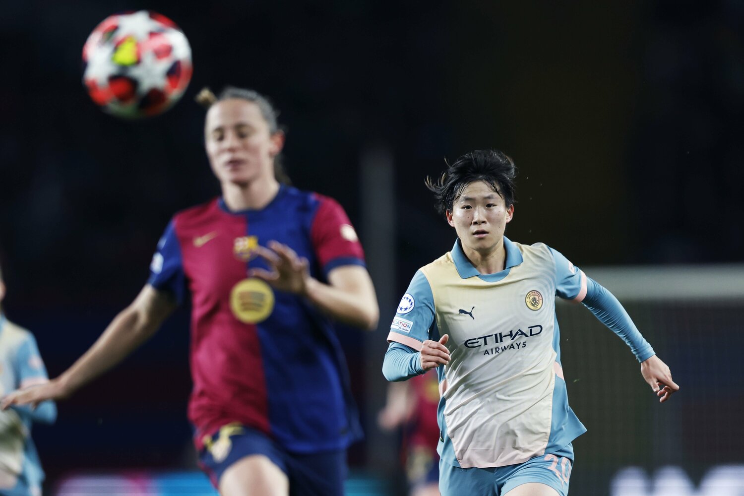 バルサのボンマティとマッチアップした長谷川唯。なでしこジャパンのプレーメーカーはマンチェスター・シティで世界トップクラスの戦いに挑んでいる