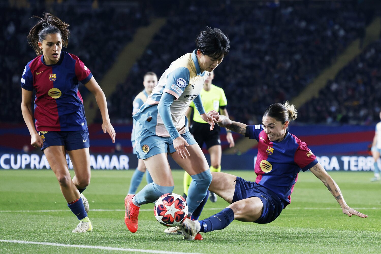バルサのボンマティとマッチアップした長谷川唯。なでしこジャパンのプレーメーカーはマンチェスター・シティで世界トップクラスの戦いに挑んでいる