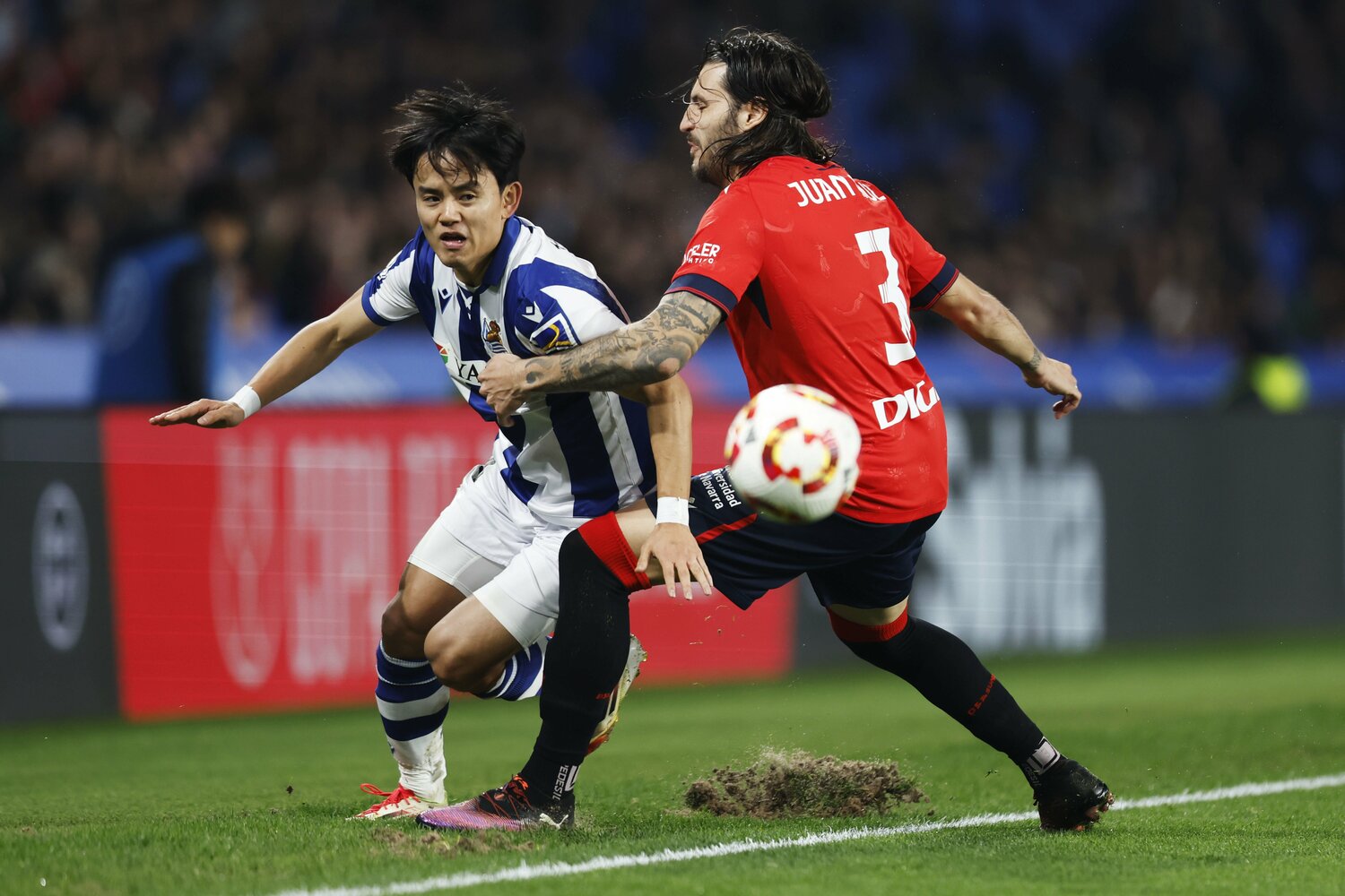 右サイドに入った久保には、オサスナ左サイドバックのフアン・クルスがマンマークについた。久保がソシエダで先発デビューを飾ったのは、21年7月に行われたプレシーズンマッチの対オサスナ戦。その際から何度となくマッチアップが繰り返されている2人である。