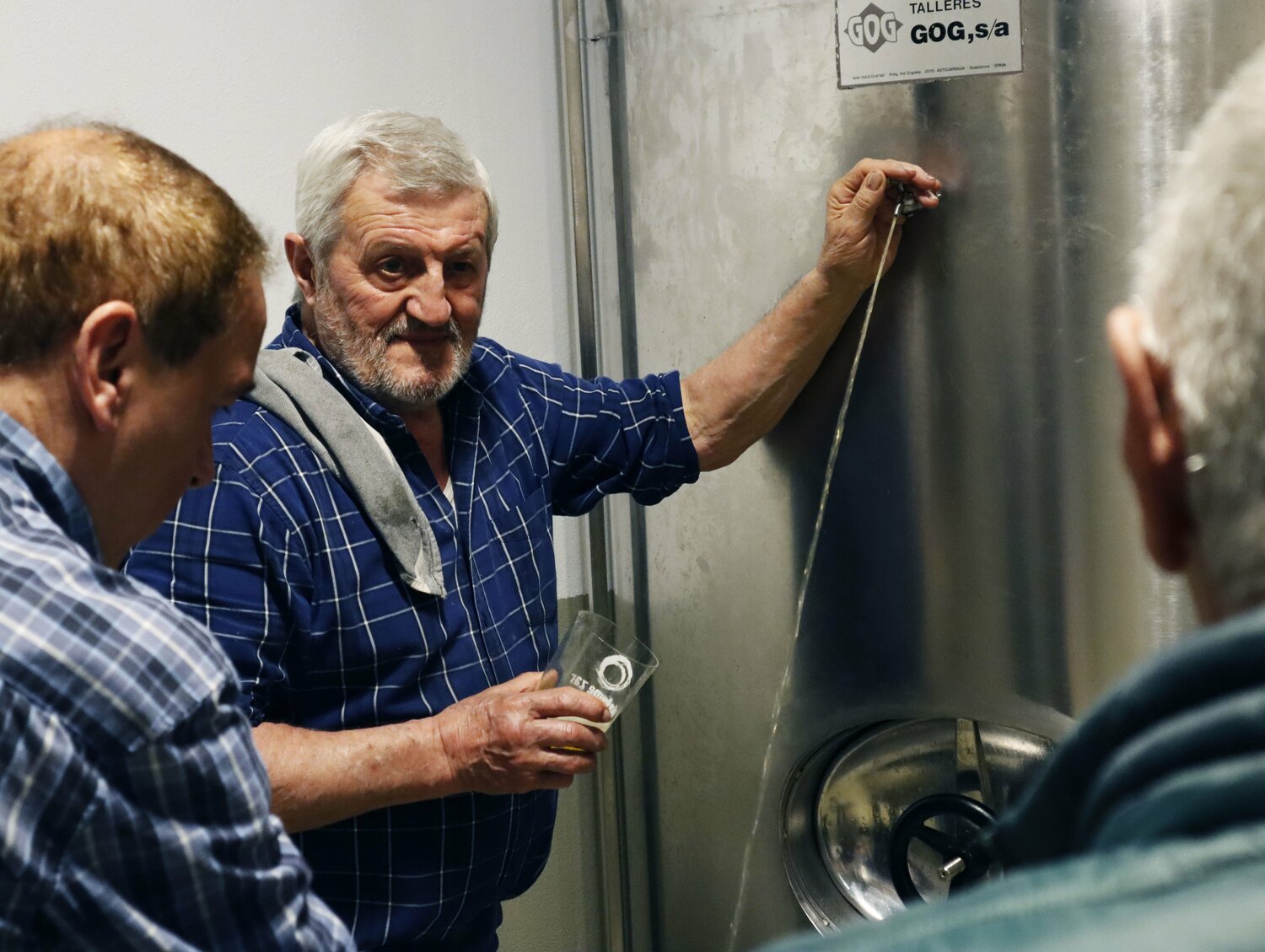 その間に、立ち並ぶ2メートル超の巨大な樽から直接シードラを注いで飲める。途中、醸造所のオーナーがシードラを注いでくれるタイミングがあった。話を聞いてみると、シードラのことやバスクの文化を教えてくれた。