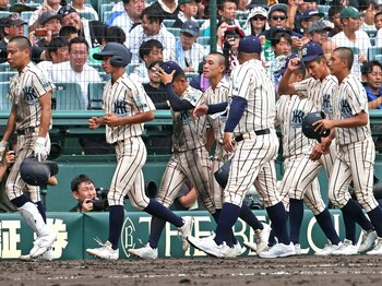 大阪勢18年ぶりに初戦で姿を消すことになった東大阪大柏原ナイン。強豪ひしめく大阪勢が春夏未勝利で終わるのは実に45年ぶりの事態だった