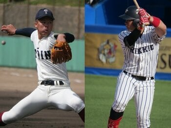 惜しくも指名漏れとなった大阪桐蔭高校の主将・中野大虎(左)。東京六大学の3冠王・山形球道の名前もコールされなかった