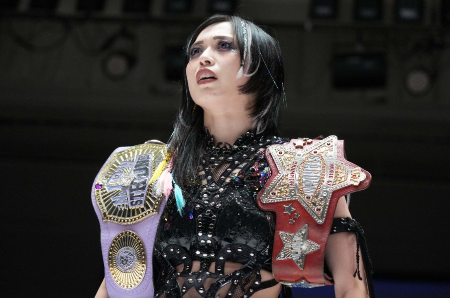 スターダムの赤いベルトと新日本プロレスのSTRONG女子王座のベルトを保持する上谷沙弥。東京ドームでの興行をぶち上げ、プロレス大賞MVP獲りに走る