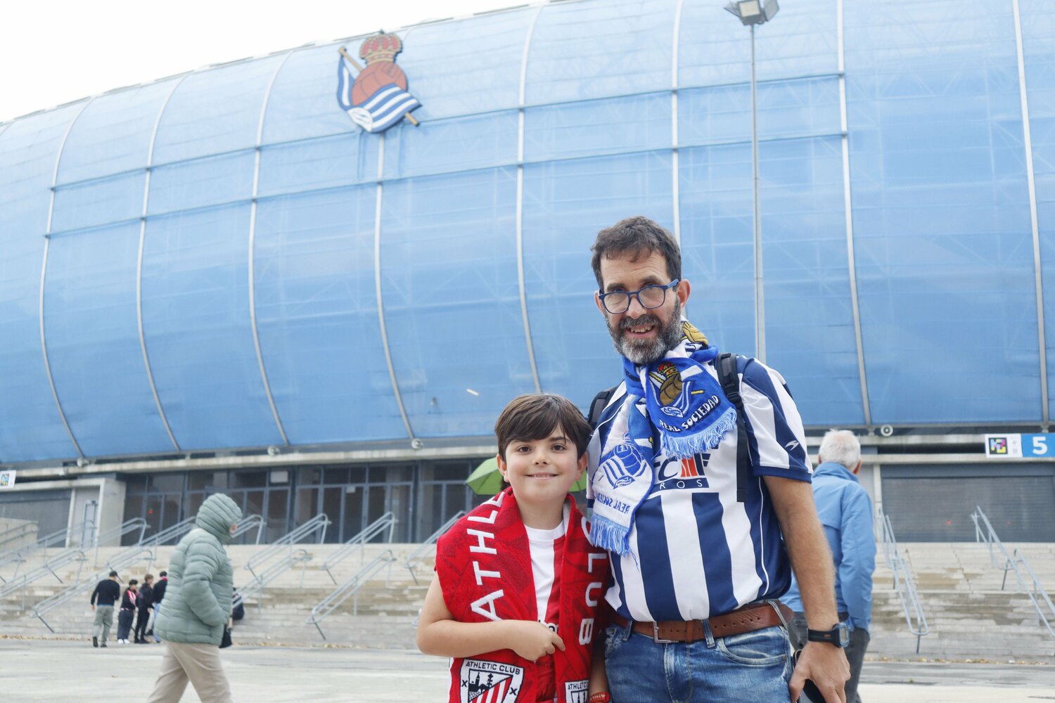 ビルバオからダービーを観戦するためにやってきたという親子に声をかけてみた。サンセバスチャン出身の父親は青白のユニホームを、ビルバオで育つ息子は自然と赤白のユニホームを選ぶようになったという。