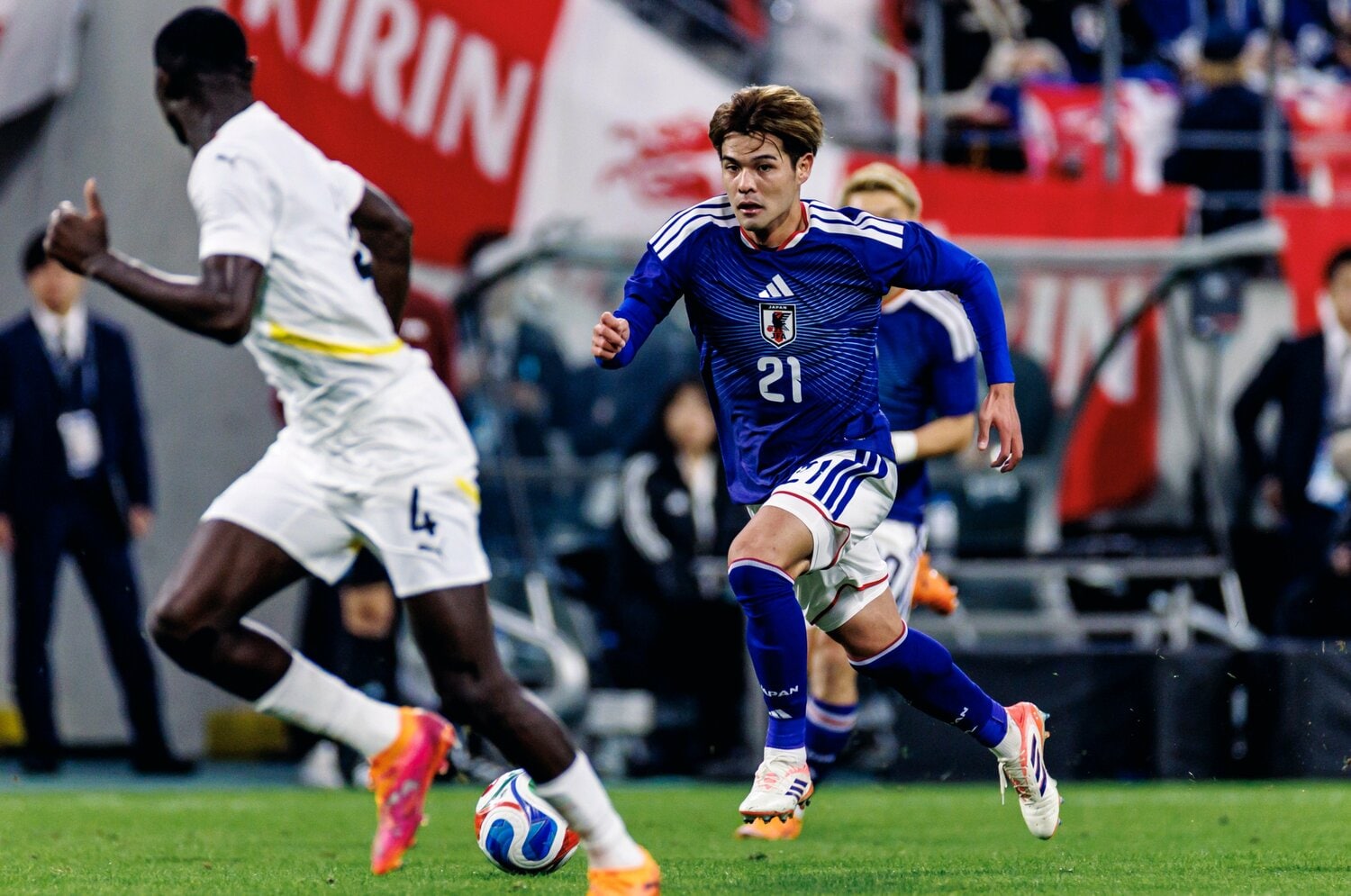 ――まず、ガーナ戦について。彼らは、すでにアフリカ予選を突破し、W杯出場を決めている。ただし、日本戦は数人の主力選手が欠けており、若手中心のメンバー構成。一方、日本の先発メンバーは10月14日のブラジル戦からGKを早川友基に、ボランチの鎌田大地を田中碧に替えただけだった。