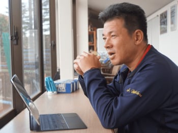 今年のドラフトを前に取材に応じた仙台育英・須江航監督