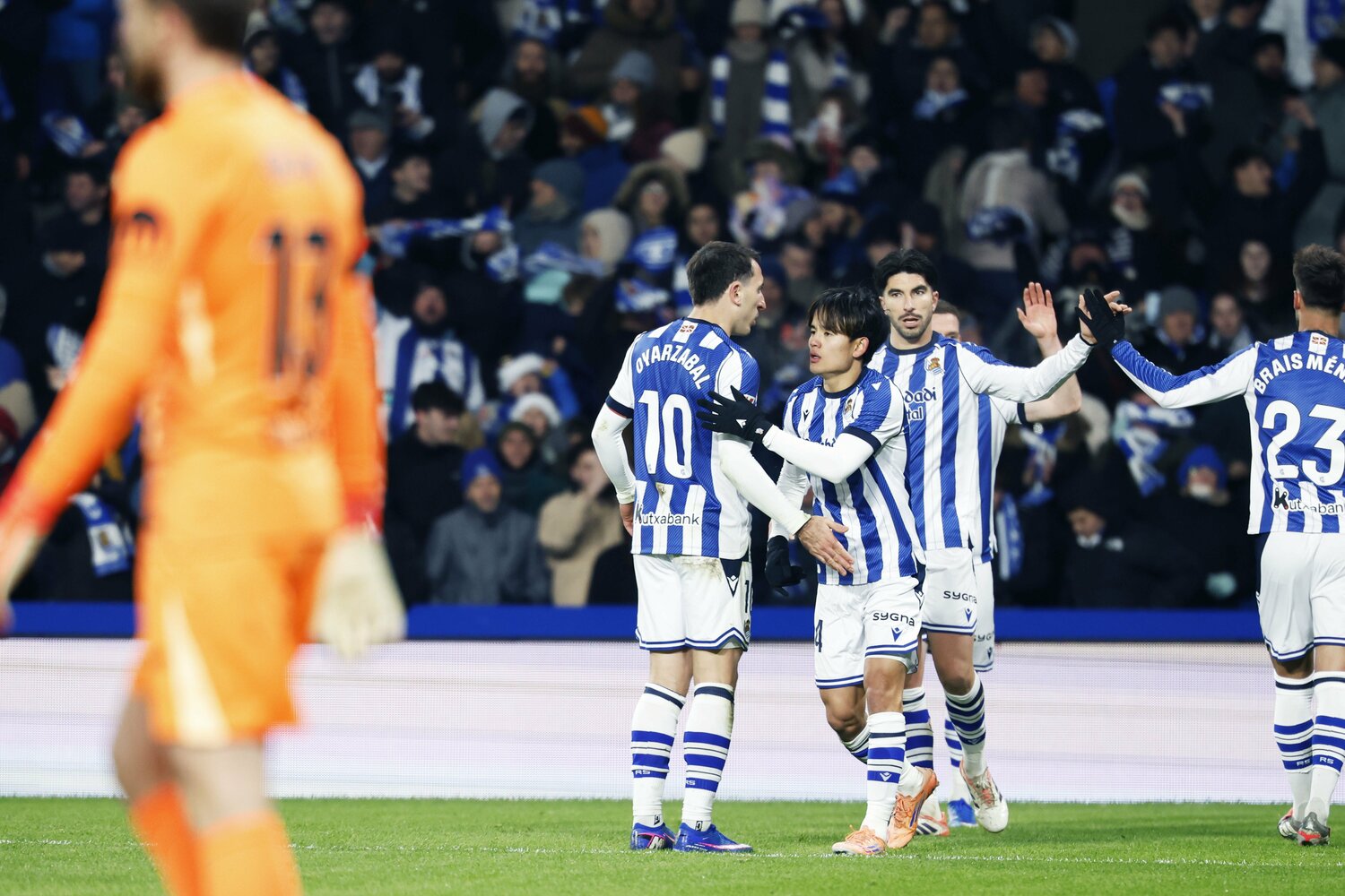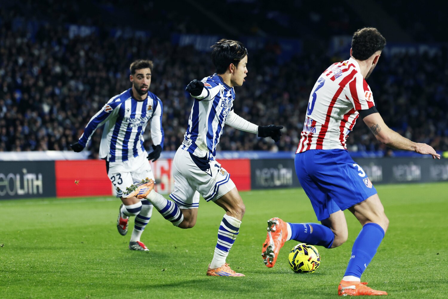 格上アトレティコを相手にしていた影響もあっただろうか、久保は自陣深くまで一度ポジションを落としてから守備対応する姿があった。攻撃時には、前線右サイドを主戦場にするだけに運動量が要求される采配だった。