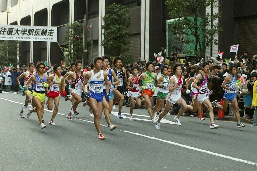 2004年の第80回箱根駅伝、往路スタート直後。写真左端が日本学連選抜の白濱三徳(徳山大)