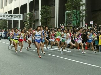 2004年の第80回箱根駅伝、往路スタート直後。写真左端が日本学連選抜の白濱三徳(徳山大)