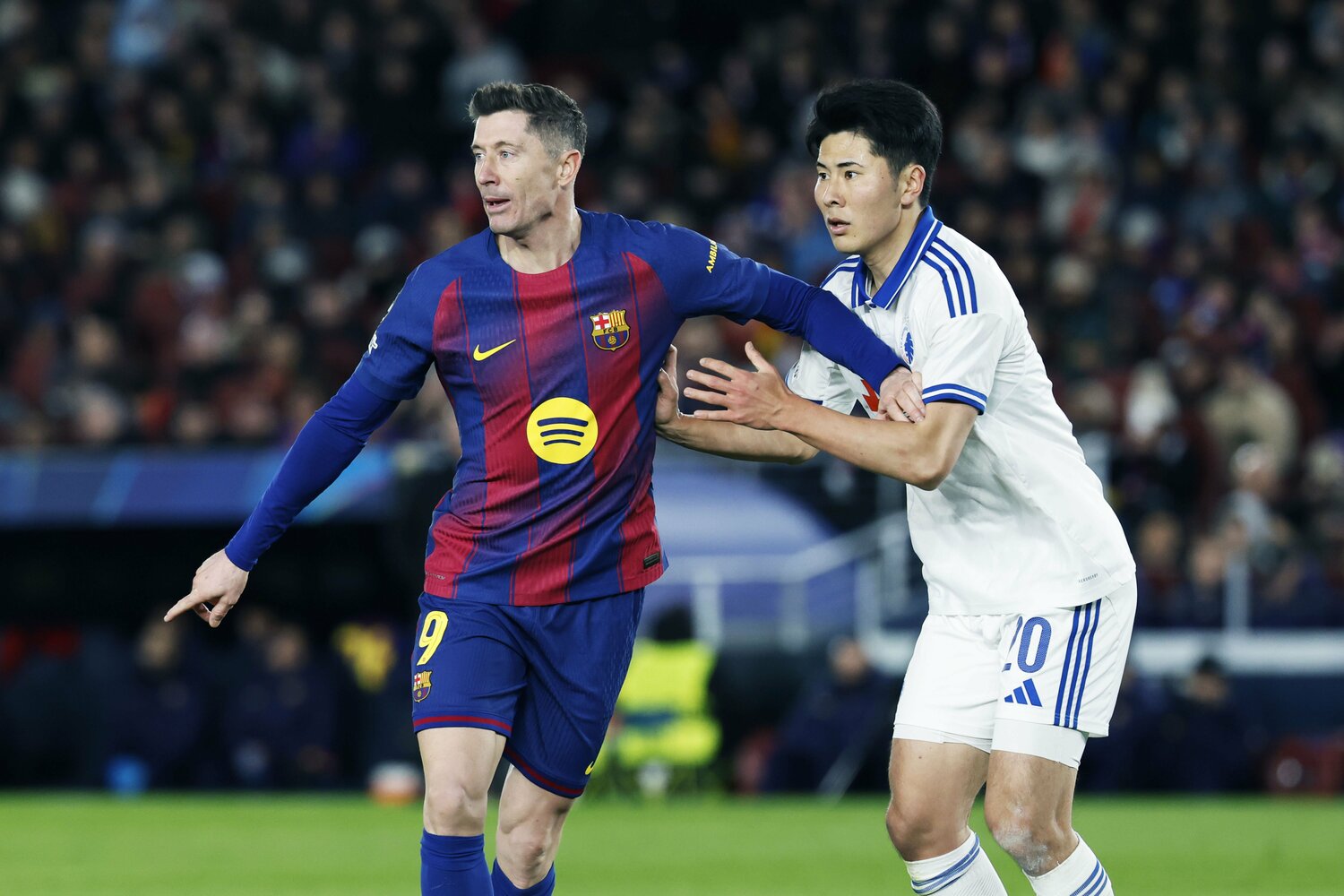 日本代表22歳DFがCLバルサ戦で「ボランチなの!?」「レバンドフスキに頭1つ飛び出て空中戦勝利」超ポリバレントな鈴木淳之介にカメラマン驚き
