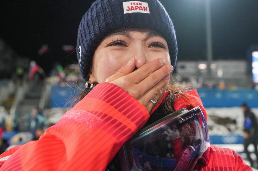 2月10日、ミラノ五輪ジャンプ混合団体で銅メダルを獲得し、涙を流した高梨沙羅