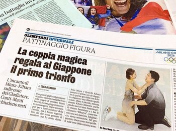 劇的な逆転劇で金メダルを獲得した「りくりゅう」ペア。イタリアでも2人に夢中になっているようだ