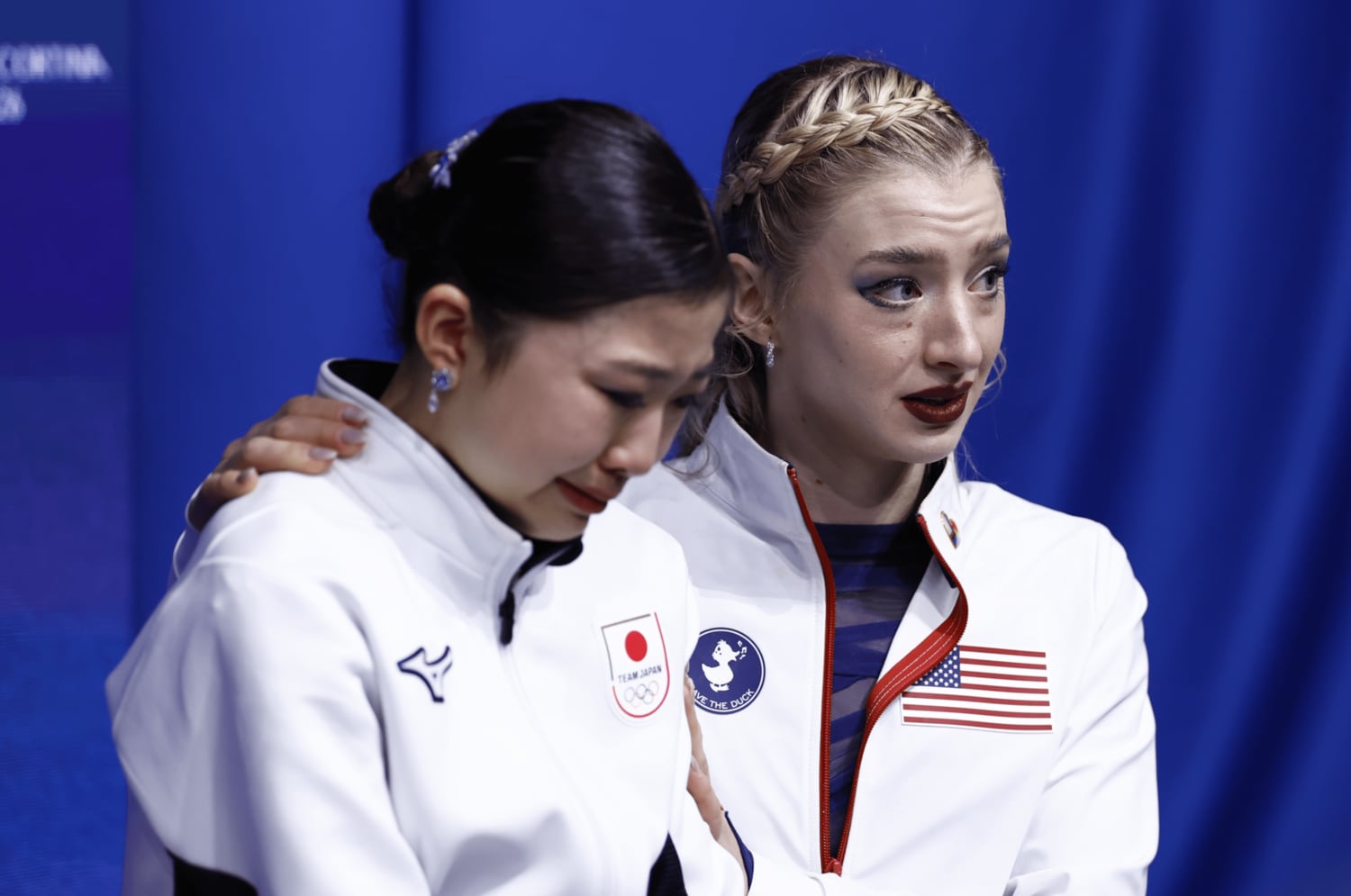 2月19日、フィギュアスケートの女子フリーが行われた。アリサ・リュウ(アメリカ)が優勝し、坂本花織が2位、中井亜美が3位、千葉百音が4位と、日本勢3選手それぞれが健闘したこの試合で、2つの光景が反響を呼んだ。