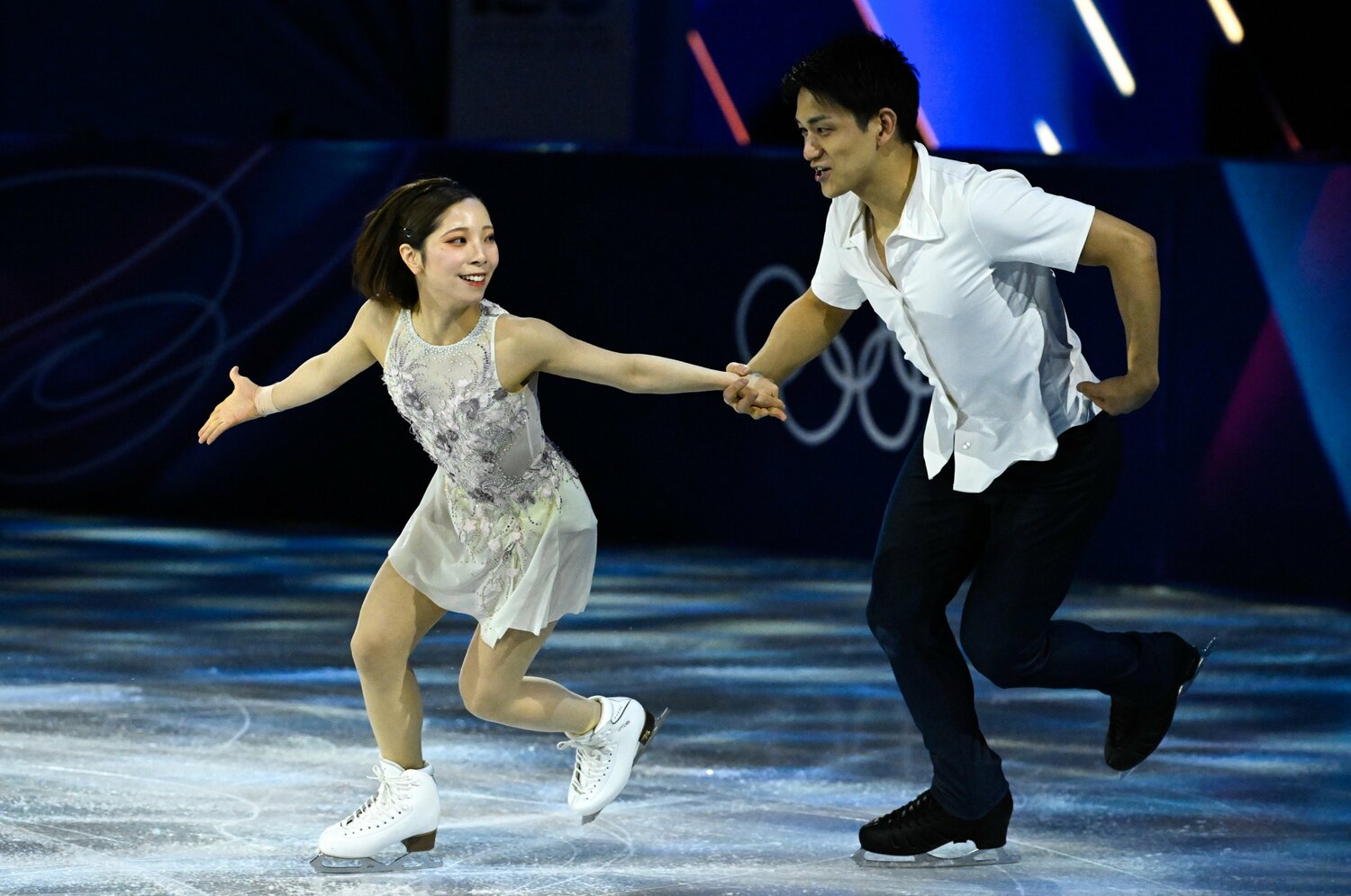 ミラノ・コルティナ五輪エキシビション、朗らかな表情で演技する「りくりゅう」ペア