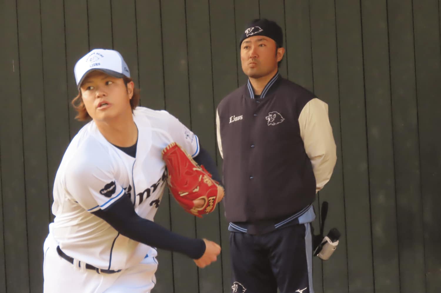 春季キャンプ2日目だったが、2月2日の宮崎県日南市南郷中央公園の埼玉西武ライオンズのブルペンでは、主戦級の投手たちの投球がミットに収まる、爆音のような音が響いていた。