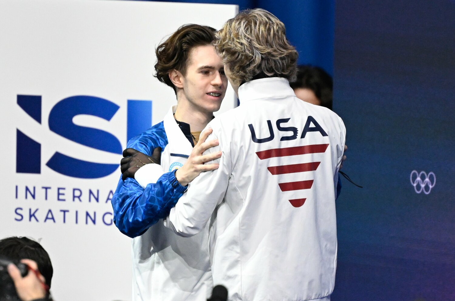 まさかの結果に終わったマリニン。しかし金メダリストとなったシャイドロフを祝福する姿を見せた
