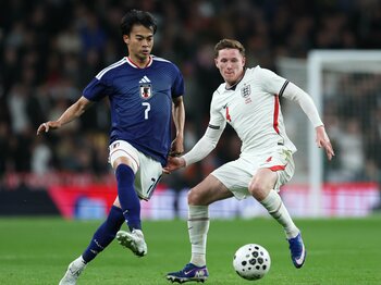 その点、現在の日本は、ウェンブリーのピッチで自信を感じさせた。後半5分過ぎ、鎌田大地(クリスタルパレス)のダイアゴナルパスに、堂安律(フランクフルト)が走り込み、胸で落としながら相手左SBニコ・オライリーをかわし、ジョーダン・ピックフォードにセーブを強いたシーンなどは、得点には至らなくても、個人的には軽く衝撃的だった。