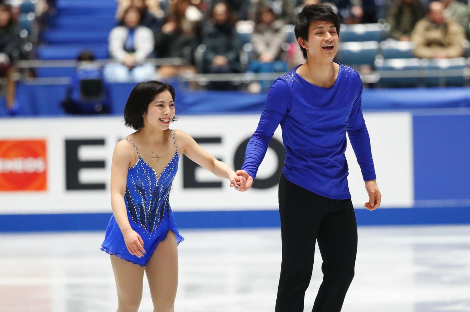 結成1年目、2019年のNHK杯フリーを終えて笑顔の三浦璃来と木原龍一