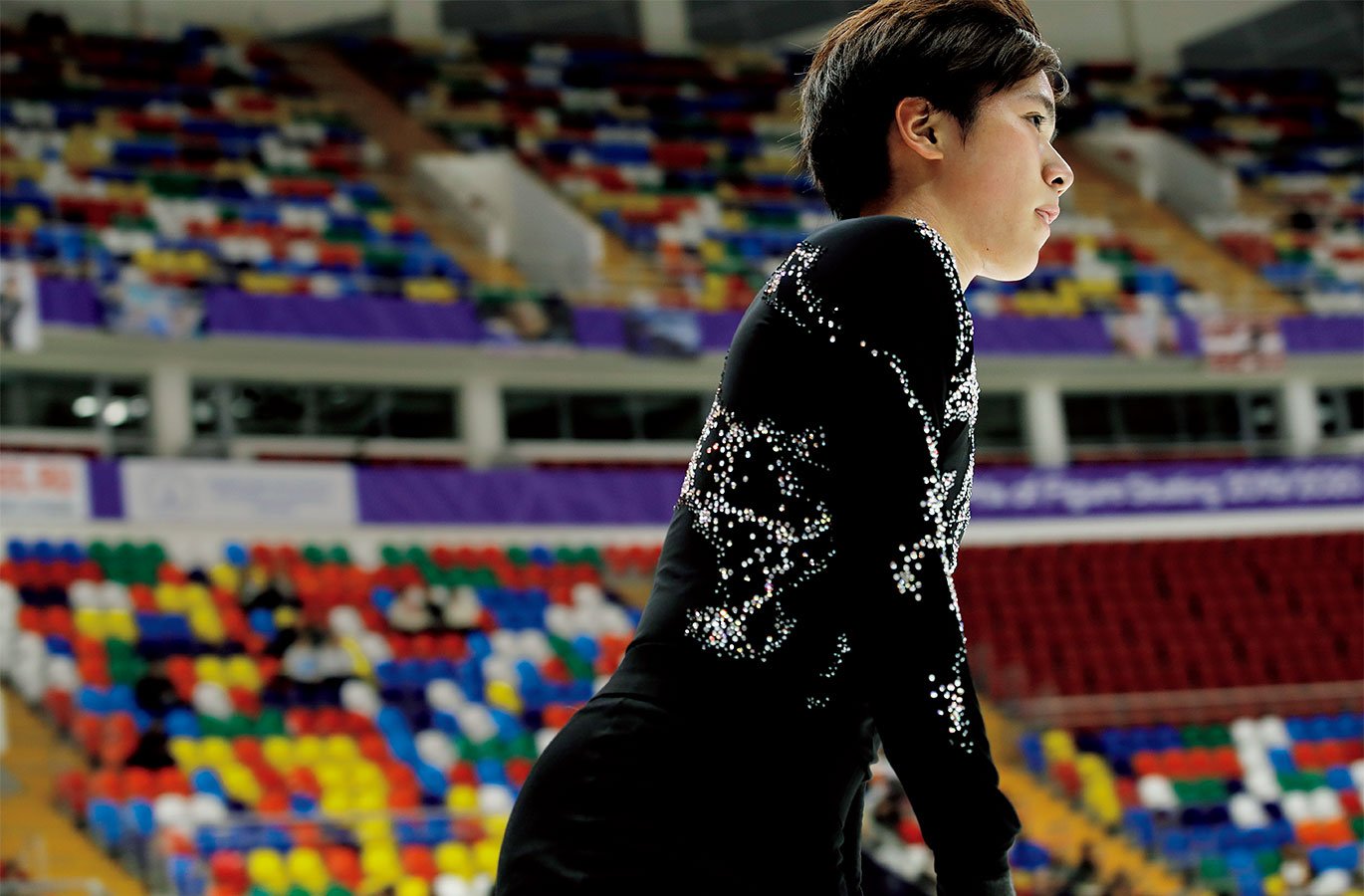 11月16日、モスクワで開催されたロシア杯の男子フリーの日。宇野昌磨は、ステファン・ランビエルコーチのアドバイスにしっかり耳を傾け、何度も頷いて氷の中央に出て行った。