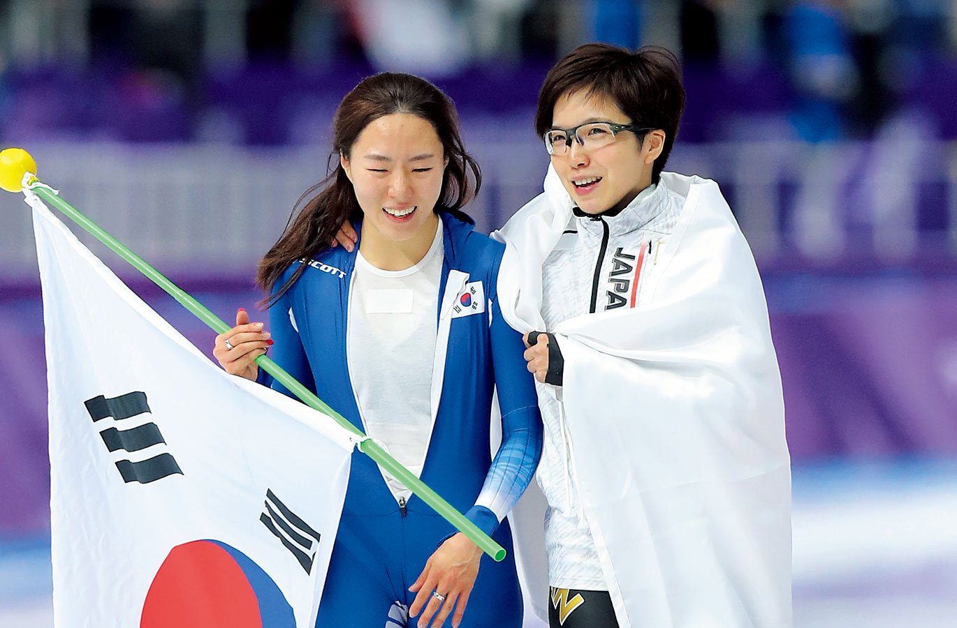 しかし、まだレースは終わっていない。すぐ後の組には五輪2連覇中で世界記録保持者である李相花(韓国)がいた。小平は唇に人差し指を当て、観客に静寂を促した。地元の期待を一身に背負っていた李は得意のロケットスタートが決まって100mをこの日最速の10秒20で入った。けれども、後半の粘りで小平に及ばなかった。