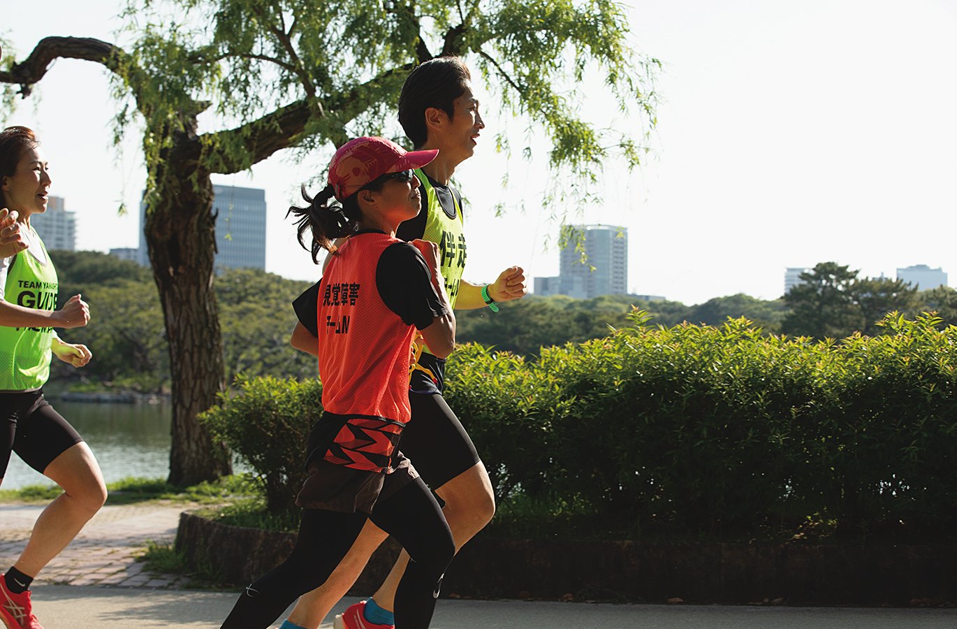 伴走者として声をかけるのは、歯科医院を経営する樋口敬洋。隣を走るのは、パラリンピック金メダリストでブラインドランナーの道下美里だ。見えないはずの目に、一切の迷いはなかった。頼りは一本のロープと、樋口の声と気配。それに呼吸のリズムと音の強弱――そのすべてを、彼は精密にコントロールしていた。