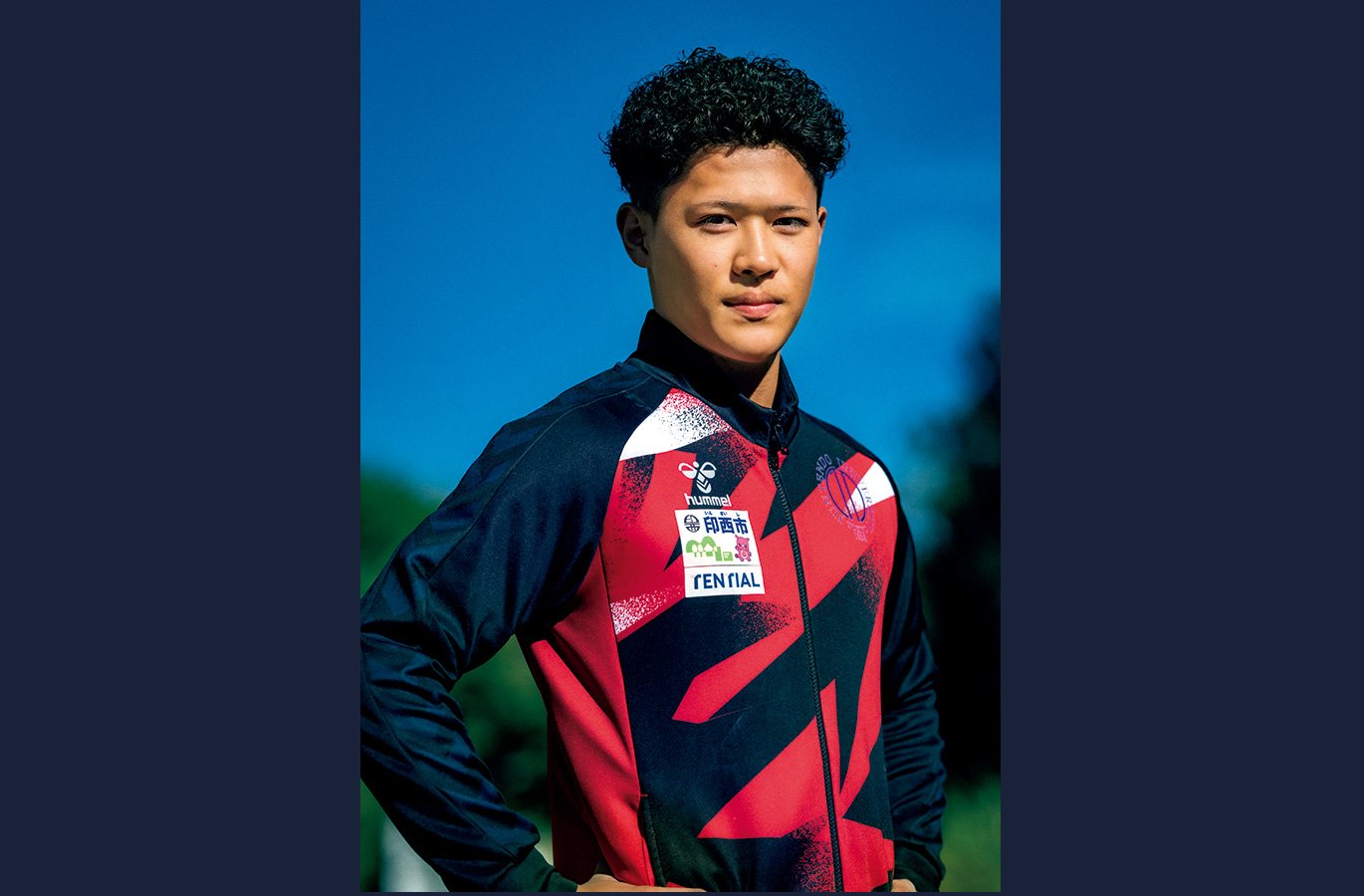 競技場でひときわ目を引くヘアスタイルが、角皆友晴のトレードマークだ。SNSで好みの髪型に目星を付けると、試合前に美容院で気合いを注入する。