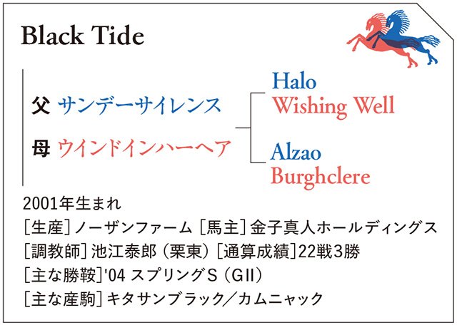 ディープインパクトの兄ブラックタイドである。息子のキタサンブラックからイクイノックスがでて、ソールオリエンス、クロワデュノールもクラシックに勝ち、父のサンデーサイレンスから数多く枝分かれした種牡馬の系譜のなかで、いちばん太いサイアーライン「ブラックタイド系」を形成する可能性さえでてきたのだ。8年前、キタサンブラックの取材でブリーダーズ・スタリオン・ステーション(北海道日高町)を訪れブラックタイドの話を聞いたときは、まさかこういうことになるとは想像もしなかった。