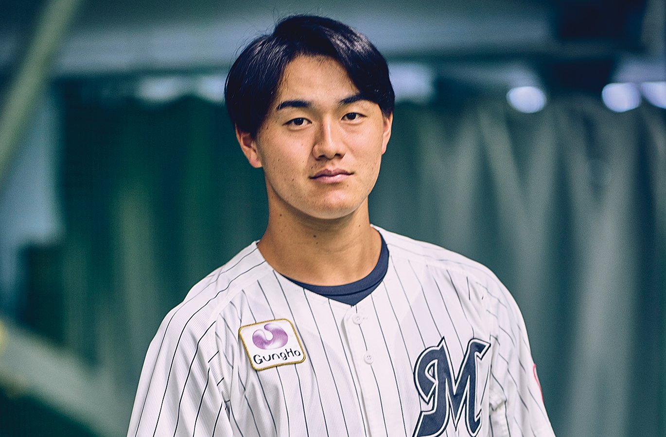冷たい雨が降る秋のZOZOマリンスタジアム屋内練習場。西川史礁は凜々しい表情で撮影に臨んでいた。