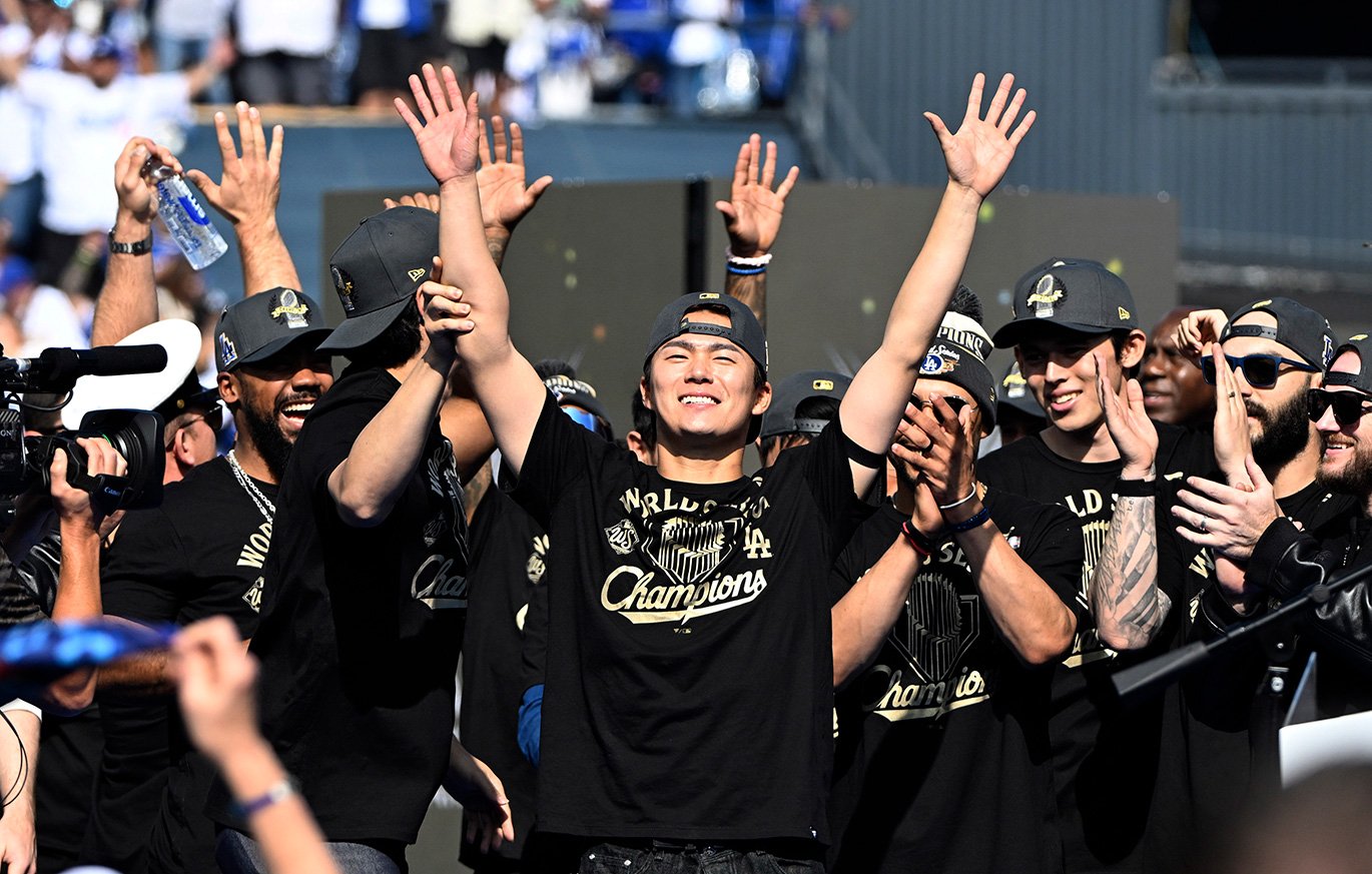 超満員のドジャースタジアムの中央に設置されたステージへ先頭で向かったのは、山本由伸だった。11月3日に行われた優勝パレード&祝勝イベント。青と白の紙吹雪が舞う中、山本は間違いなく、大歓声の中心にいた。ワールドシリーズ(WS)で3勝を挙げ、MVPに輝いた実績だけではない。第6戦に続き、連投で第7戦を締めくくったその気概を、ファンの誰もが「エース」として認めていた。