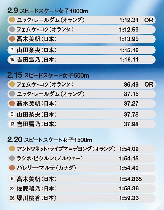500mで2大会連続メダルを獲得した持ち味のスピードに乗り、効率の良い滑りでラップを落とさず、上がり1周の落ちを最小限にとどめてゴールする。この展開は'19年3月、今なお破られていない1分49秒83の世界記録を出した時のパターンでもある。高木は自分にしかできないと自負する黄金の戦略を、集大成のレースにぶつけた。