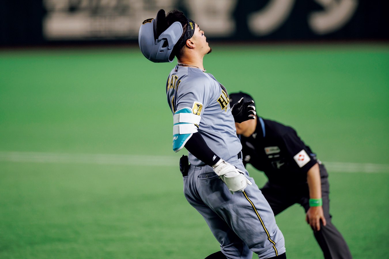 開幕戦を終えた直後、佐藤輝明は大股で階段をのぼり続けた。速足で、しかも一段飛ばし。追いすがる報道陣は皆、置いていかれないだけで精一杯である。