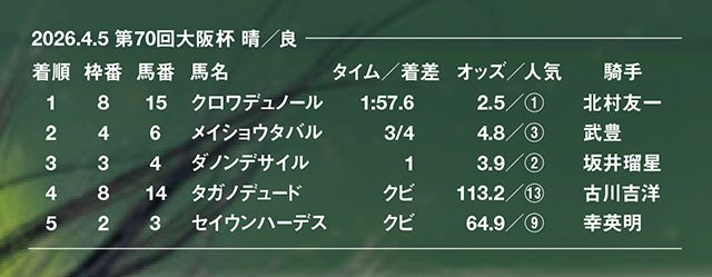 「第70回大阪杯」(4月5日、阪神芝2000m、国際、定量、1着賞金3億円)は、今年がGI昇格10年目。満開の桜の下に過去最高のメンバーが集結して、節目に鮮やかな彩りを添えた。