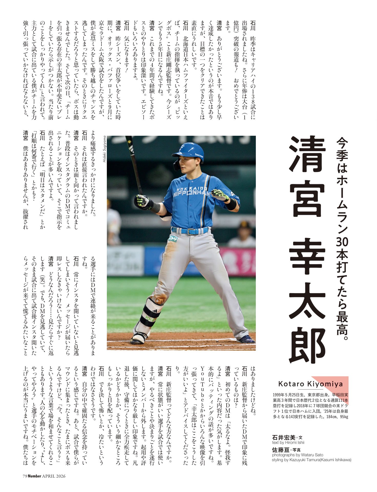 石川佳純のあなたに会いたい⑪ 清宮幸太郎「今季はホームラン30本打てたら最高」