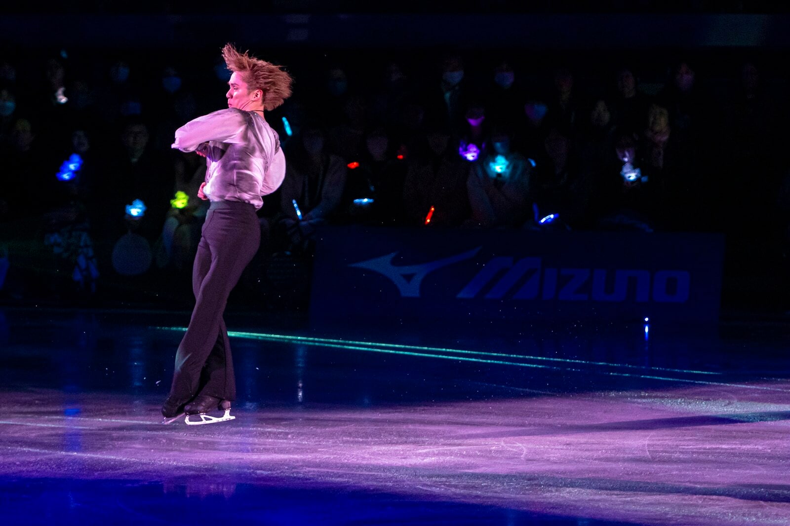 すると中野が「4回転を跳びに行く前に『行くぞ』みたいな感じを出すと、選手の時に4回転をやっていたのと重なって良い感じになるから、『わざと大技っぽくやって欲しい』という話をみんなでしていた」という。宇野も「(競技では)曲に溶け込ませるジャンプは凄いと思っていたけれど、(ショーでは)大技をやりに行く感を出すのも結構いいなと思いました」と話し、プロとしての演出のこだわりを見せた。