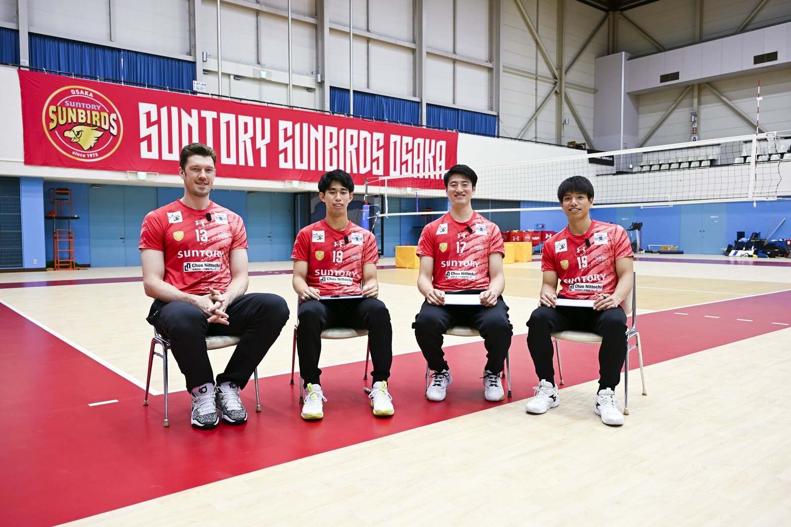 今回はチームを代表して3人の選手から、ムセルスキー選手に質問してもらいました。同シーズンにサンバーズに加入したリベロの喜入選手、同じオポジットの甲斐選手、そして理論派ミドルブロッカーの樫村選手。